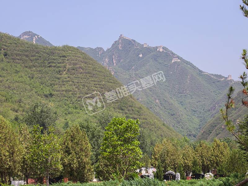 陵园依山而建,气势非凡。前临响潭水库,背靠居庸关长城,左侧山势绵长,如青龙盘卧;右侧山势蜿蜒,如白虎踞立,鸟瞰整个陵园,一面临水,三面环山,形似玉椅,势如腾龙,层林叠翠,宛若仙境。